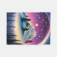 Um belo cobertor Sherpa exibe uma cabana mágica sob um céu roxo e nevado.