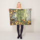 Uma re-rendição do dominio público de uma janela de vitral do nouveau da arte que mostra uma raposa perto de uma vinha que cumprimenta o sol da manhã.