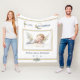 Adicione o primeiro cobertor de Natal deste bebê como um presente ou sotaque de férias para seu filho. Concebido com uma imagem de anjo aquoso em azul e branco macios, com texto e quadro cor azul e dourado e acentuações florais festivas. O texto inclui: Primeiro Natal, nome e data de nascimento do seu filho, num fundo branco. Para personalizar, basta inserir o nome e a data de nascimento do seu filho no nosso modelo fácil, substituindo o texto de amostra. Faz um presente de Natal excelente e uma manutenção duradoura.