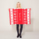 Design de Natal com flocos de neve brancos, bonecos de neve, estrelas e faixas sobre fundo vermelho e texto.