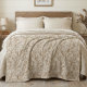 Elevate your space with this William Morris inspired neutral beige gold botanical leaf pattern fleece blanket. Featuring elegant flowing foliage, it suits modern, farmhouse, and classic decor styles while adding warmth, texture, and timeless sophistication to any bathroom. Created by Simply Farmhousep Press.