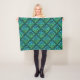 Um cobertor de velo com um nó celta azul-esverdeado repetia design de azulejo de diamante contra um fundo preto.