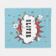 Fala de Comic Super-Herói, Narrador de Nuvem, Fleece Blanket. O cobertor é um azul brilhante e alegre, adornado com estrelas amarelas lúdicas para um toque divertido. O recurso de destaque deste cobertor é a nuvem de fala de desenho animado, que pode ser personalizada com o nome da criança para um toque exclusivo e personalizado.