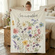 Bonito cobertor floral rosa com nome personalizado. Design de flor silvestre de coloração aquosa delicada. Fácil de mudar o texto.