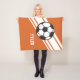 Um design desportivo com uma bola de futebol contra as listras diagonais brancas e o fundo alaranjado. Personalize esta cobertura acolhedor do velo com uma frase conhecida ou curta. A pia batismal escolar do estilo dá-lhe uma sensação dos esportes atléticos. Esta cobertura é grande para fãs, jogadores e treinadores de futebol. Acolhedor acima no sofá ou no estádio com esta cobertura quando você olhar o jogo. Igualmente fazem um excelente atual para o Natal, o aniversário e os outros feriados. Este design disponível em uma variedade de cores. Se você não encontra o que você está procurando apenas a mensagem mim com seu pedido.
