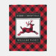 Esta rena de xadrez de búfalo vermelha e preta, acentuada pelo seu nome familiar e pela saudação "Feliz Natal", é um presente único para a época de férias. Projetado por artistas © Tim Coffey e Susan Coffey.