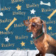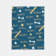 cobertor de cães personalizado com o nome do seu animal de estimação em um fundo azul com estrelas e ossos em branco e amarelo. Altere as fontes e as cores clicando no botão para editar a design.