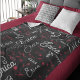 Adicione seu próprio nome para criar um bom padrão estampado sobre o fundo preto do cobertor. Seu próprio nome especial se repetia em diferentes estilos de letra branca, misturado a notas musicais pequenas e delicadas, borrifadas entre os nomes. Uma música de excelente inspirou uma ideia de presente para combinar com a decoração do seu quarto
