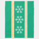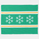 This festive seasonal design features triple white snowflakes centered within blue green, white, and golden yellow alpine stripes.