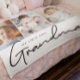 Enrole a vovó apaixonada pelos Netos personalizados "Ame a vovó" Fotos em branco. Este cobertor aconchegante mostra fotos carinhosamente apreciadas de seus netos, maravilhosamente arranjadas com a sentida mensagem "Ame sua avó." Perfeito para aniversários, feriados, ou só porque, este cobertor de fotos personalizado é um presente pensativo e significativo que vai aquecer seu coração e mantê-la próxima de seus amados netos. Personalize com a sua escolha de fotos e texto para criar um único tesouro que ela vai tesourar para sempre.