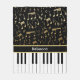 Um cobertor de velo de na moda com um elegante design de na moda para o pianista ou músico com notas musicais coloridas de ouro e um teclado de piano sobre fundo preto com ouro e faixa preta para adicionar o nome de sua escolha para criar um dom personalizado único para qualquer ocasião