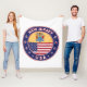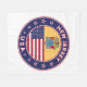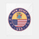 Crachá de Nova Jersey com bandeira de Nova Jersey e bandeira dos EUA cores, forma arredondada. Emblema de Nova Jersey. Selo de Nova Jersey. Coleção dos Estados Unidos.