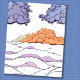 Um trabalho de arte de nuvens e mar divertido e detalhado. Linhas expressivas e correntes.