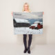 Uma cena de vitrine, rural, com um caminhão vermelho, velho e coberto de neve, sentado perto de uma cabine de ramshackle perto de Sandpoint, ID. O texto personalizável que lê "IDAHO" também é exibido.