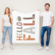 Este design do outono dá as boas-vindas à estação do outono com a frase "Olá outono". As palavras são dispostas em um layout simples, mas visualmente atraente, com "Olá" colocado acima de "Queda". Cada letra da frase é apresentada em uma fonte arrojada, achatada com uma textura levemente amaldiçoada, dando a ela um olhar rústico e metido que complementa o tema do outono.