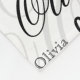 This fleece blanket is tailor-made, specifically designed to highlight the name "Olivia." This extraordinary gift option includes a background pattern decorated with the letter "O," in a chic black, white, and grey color combination.