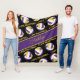Este cobertor de velo divertido para raparigas apresenta a imagem realista de um vôlei que tem painéis roxos, dourados e brancos aprontados num ângulo com a frase de texto esportivo "Eu adoro vôlei" em ouro que se estende entre as filas angustiadas de volichões - os painéis roxo e dourado das bolas são misturados com um padrão de cintura caleidoscópica para uma aparência textuosa - personalize seu nome fonte sofisticada manuscrita em uma faixa de cor roxa com largura de cheio manchada angular - o plano de fundo é preto personalizável - por katz_d_zynes