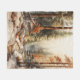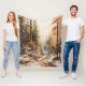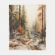 Uma representação aquosa de 2 cabines rusticadas na floresta durante o outono.