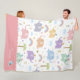 Dê a sua filha seu próprio adorável padrão pastel de elefante com este quarto ou cobertor de velo de quarto. O cobertor tem elefantes roxos, azuis e amarelos e um fundo cor-de-rosa atrás do nome do seu filho. Há também arco-íris, pássaros, nuvens, corações e flores. Este cobertor de velo personalizado faz um presente de excelente para um aniversário, Natal ou outro feriado.