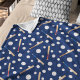 Este divertido padrão de baseball e morcego mostra o equipamento esportivo em um padrão em azul escuro. Faz um excelente adicional ao quarto ou berçário de um menino ou menina. Ele também faz um belo aniversário, Natal ou outro presente de Natal.