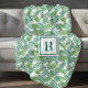 O cobertor personalizado de velo monograma, com folhas exóticas exóticas de palmeiras tropicais, botânicas verdes, e monograma personalizado no centro.