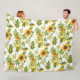 Imagens de girassol de ouro brilhante fazem um lindo padrão de colagem neste cobertor de velo. As imagens de girassol são cercadas por folhas verdes e caules encaracolados e colocados sobre fundo branco. Esta é uma adição ensolarada e feliz a qualquer quarto! Certifique-se de ver os produtos correspondentes em nossa loja. *As imagens incluídas neste design são de Designs LeCoq.