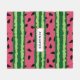 Cobertura com um padrão de melancia fofo. Casca verde em camadas de listras junto com uma camada de listras cor-de-rosa com dentro de sementes pretas. Diversão e design de verão. Um retângulo colocado em cima com o dentro de texto.