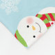 O cobertor de velinha e veloz de férias apresenta uma família colorida de boneco de neve vestindo lenços raspados e chapéus de inverno e um design com padrão de neve. A cor de fundo azul-gelo pode ser modificada.