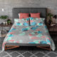 Belo azul contemporâneo, verde-menta, laranja-coral e meio-círculos geométricos cor-de-rosa e padrão de quadrados. design ornamentado de hipster, elegante e divertida para o designer rico artístico do interior, diva de moda artística, trote popular do quadril, retrato de vintage, estilo de nouveau deco art ou amante de motif digital abstrato gráfico. Disponível numa variedade de produtos modernos de decoração doméstica para aqueles que procuram decorar o seu quarto principal ou infantil, cozinha, creche, sala de estar ou de família, caverna de mulher, dormitório universitário, condomínio, estúdio ou apartamento.