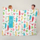 Adicione um toque bonito ao quarto ou ao berçário do seu menino com este cobertor que celebra veículos de transporte: carros, bicicletas, balões de ar quente, helicópteros e aviões. Os veículos estão em cores brilhantes e amigáveis para crianças, de azul, amarelo, vermelho, rosa e verde. Adicione o seu nome para um toque pessoal.