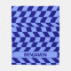 Cobertor De Velo Padrão de verificação azul ondulado com nome perso