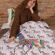 O padrão gráfico do arco-íris com um cavalo abstrato arrojado no meio que é feito de ondas coloridas. Enrola-se neste cobertor macio, na moda.