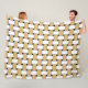 Um cobertor de velo com padrão geométrico de ouro e branco.