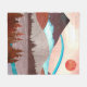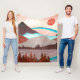 Paisagem de montanha em vermelho e azul com um lago e um arco-íris azul arrojado.