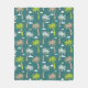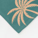 Um meio século, padrão retrô de palmeiras brancas, verdes e castanhas-claras e nuvens brancas e azuis, contra um fundo verde-escuro.