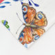 Uma cobertura floral do velo da papoila vermelha bonita com as borboletas azuis e alaranjadas bonito. Personalize adicionando seus nome e monograma ao crachá azul arredondado do octagon do rapaz pequeno. Esta é parte da coleção azul floral do monograma da borboleta da papoila vermelha.
