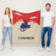 Crie um presente personalizado para o seu moto de neve favorito. É perfeito para aquecer depois de um dia frio, movendo-se neve. Este cobertor de velo personalizado tem uma ilustração de estilo vintage de um móvel de neve e cavaleiro em conjunto azul marinho contra um pano de fundo de creme ou montanhas coloridas de marfim contra um fundo vermelho. Está pronto para ser personalizado com um nome em marinho em letra azul.