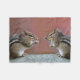 Chipmunks adoráveis que sentam-se em uma parede. um está tendo um petisco enquanto o outro está lavando sua cara.