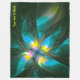 Uma imagem fractal multicolorida parecida com uma ave da selva. A cor primária é verde; o azul e o amarelo também são destacados. Personalize adicionando seu próprio texto.