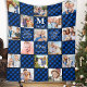 Cobertor De Velo Patchwork de Xadrez Azul Família Personalizada 15