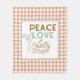 O cobertor da Trendance apresenta o texto "Peace Love & Country Music" com um buquê de margarida sobre o fundo de gingham