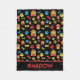 Precisando de um cobertor para o seu novo filhote, então esta pata e design sem costura óssea são as perfeitas para escolher com as patas e ossos de cachorro (Kenels) em cores brilhantes de vermelho, azul, amarelo e verde, tudo em um fundo preto. Personalize-o para o seu pãozinho perfeito com o nome deles para fazer deste um cobertor especial extra para eles.