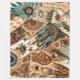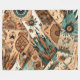 Aztec design tribal nativo americano, com uma manta de retalhos de penas boho, azul e castanho, elementos florais de aquarelas e formas geométricas.