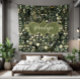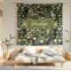 Uma ilustração linda, sonhadora e detalhada de um campo de margaridas cremosas sobre um fundo preto.