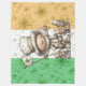 Uma ilustração alegre do Dia de São Patrício com um personagem principal feliz segurando uma bandeira de trevo, acompanhado por três figuras festivas menores. Contra um vibrante fundo da bandeira irlandesa repleto de padrões divertidos de trevo, esta obra de arte captura a diversão, o charme e o espírito celebratório da cultura irlandesa e das festividades de março.