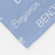Este cobertor 30 x 40 seria fantástico para o seu bebê, filho, sobrinho, neto, afilhado - qualquer um que você queira envolver no seu amor. Ele tem seu nome de cheio em uma fonte moderna de script e seu apelido em uma fonte clara e nítida de BONÉ em branco em um fundo azul. Moderno, mínimo, fabuloso - como ele!