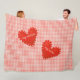 Dois sentidos vermelhos adoram corações "apiquados" com bordas brancas e pontas de cobertor sobre fundo de gingham vermelho e branco. Um eterno, nostálgico, aconchegante, imenso, country vibe design que faz um cobertor doce e romântico para um casal amado, ou para uma noite romântica especial em. Use a ferramenta modelo fácil para personalizar os corações com qualquer texto que você escolher para criar seu próprio cobertor personalizado em qualquer tamanho que você quiser. Projetado pelo artista e designer internacional Renate Kriegler, vencedor do prêmio.