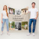 Crie seu cobertor de velo na memória amorosa de alguém especial. O título diz "para sempre em nossos corações" em elegante escrita manual e impressão moderna em maiúsculas. O modelo de foto está pronto para que você adicione 6 de suas fotos preciosas e você também pode adicionar seu próprio texto personalizado. A nota do memorial de exemplo diz "Na memória amorosa de um homem gentil e gentil" e você pode editar isso como quiser. O design tem uma paleta de cores de tipografia negra em um plano de fundo bege que você pode editar clicando em personalizar mais (ou você pode me enviar uma mensagem para obter assistência).