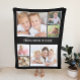 Crie um cobertor personalizado de manutenção de colagem de 6 fotos para aquele presente personalizado perfeito. Adicione suas fotos de família, amigos, animais de estimação, memórias, eventos, fotografia, etc. em quadros brancos e uma ou duas linhas de texto em tipografia branca moderna contra fundo preto.