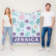 Capture the light, airy feel of the beach with this gorgeous Personalized Coastal Seaweed and Bubble Blanket! The whimsical, scattered design features seashells, vibrant seaweed, starfish, and bubbles on a calming pale blue background. The colors—pink, teal, and lavender—provide a perfect pastel coastal aesthetic.